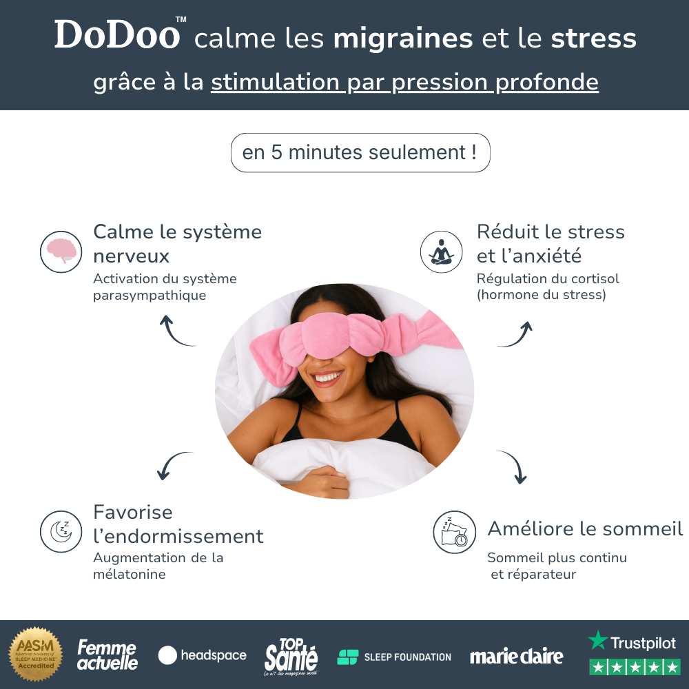 Rien ne vaut un DoDoo. Grâce à sa conception à 4 capsules, il exerce une pression douce et apaisante sur vos yeux et vos tempes. Sans sangles ni Velcro, il offre un confort moelleux et lesté qui reste en place quelle que soit votre position de sommeil. C'est l'expérience de sommeil originale et unique en son genre.